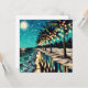 Bonito romántico arte costero Ai que representa una hilera de palmeras con luces blancas iluminadas sobre ellas. Una reflexión bonito sobre la playa de arena y las olas.