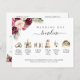 Una línea de tiempo y un programa de boda de color acuático para impresionar a sus huéspedes. Elegante detalle de caligrafía escrita a mano. Delicados detalles florales de acuarela en una hermosa mezcla de tonos burdeos, ruidosos, rosas, polvorientos rosa y mauve berry. Las imágenes de la línea de tiempo de la acuarela de la artesanía en tonos dorados y la coordinación de los detalles florales al ramo en la esquina. Capacidad de personalizar de información en la parte posterior para adaptarse a sus necesidades e incluso desplazarse por las imágenes de la línea de tiempo y el texto a un orden diferente seleccionando "personalizar más adelante". Parte de nuestra colección "Romance Floral" con una gran variedad de productos de coordinación. Visita la colección completa haciendo clic en el enlace "Otros productos de esta colección".