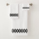 Elegante y elegante línea de diamante negro sobre el juego blanco de toallas de baño.