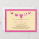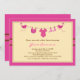 Invitación linda y moderna de la fiesta de bienvenida al bebé grande para un mamá-a-ser que cuenta con a un chica. Ofrece una línea de la ropa llevada a cabo por dos pequeños pájaros con un juego del cuerpo, un babero y un par de calcetines. Ideal dulce y juguetón del diseño para una mamá elegante. Añada su propia fraseología.