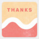 Un sello para sobres en negrita creado para coordinar con la tarjeta de notas de papel "Líneas onduladas". El pegatina dice "Gracias", y presenta un fondo de textura amarillo y rojo con un diseño simple de líneas onduladas.