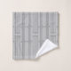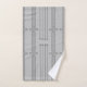 Este conjunto de toallas tiene un diseño art decó de líneas verticales con diamantes y círculos en plata sobre un campo de gris.