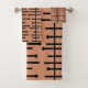 Este conjunto de toallas tiene un diseño moderno de mediados de siglo de una serie de líneas atómicas en un campo de rosa retro.