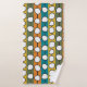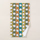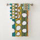 Este conjunto de toallas tiene un diseño moderno de mediados de siglo de círculos blancos "deformados" conectados con líneas negras en un campo de tiras verdes, naranjas, turquesas y doradas. Si te gusta el diseño pero prefieres colores diferentes, envíame un mensaje.