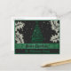 Prepárate para compartir la alegría de la temporada con esta tarjeta postal de Feliz Navidad! Estas postales muestran juguetones verdes curvados de árboles navideños en un fondo negro puro, adornados con animadas hojas huecas. Es la forma perfecta de enviar sus mejores deseos de vacaciones con estilo y un toque de encanto natural.