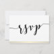 Tarjetas RSVP de boda en blanco y negro con líneas de oro y texto de personalizable