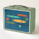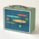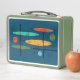 Caja de almuerzo de líneas y óvalos retro. El color de fondo se puede personalizar.