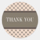 Fancy Lattice de moda y moda Gracias a los Pegatinas que presentan un elegante círculo y un patrón de rombo sobre un vibrante fondo de melocotón con un amplio borde marrón de dos tonos. Estos elegantes pegatinas de agradecimiento son perfectos para un boda moderno. Fácil de personalizar, simplemente añada el texto personalizado de su elección. Haga clic en "Personalizar" para encontrar más opciones de personalización.