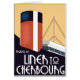 Cartel de viaje del barco vintage de Cherburgo a Francia.