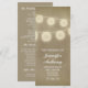 las luces de cuerda vintage iluminan las elegantes tarjetas de programa de boda.