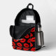 Una mochila divertida con un patrón de besos de lápiz labial rojo brillante en un fondo negro y texto que puedes personalizar con tu nombre o guardar los besos (guarda los besos! - mantener siempre los besos)