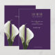 Hermosas Lirios de Calla blancos con un toque de verde sobre un fondo púrpura para anuncio de "Save the Date". PERSONALIZABLE, solo complete todos los detalles o déjeme saber y puedo personalizarlo para usted.