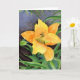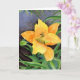 Pintura acuarela original de un lirio amarillo bajo la lluvia.
