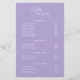 Volante moderno y profesional de la lista de precios púrpura / lavanda con un diseño sencillo y mínimo con tu nombre en un guión elegante y una fuente sans serif contemporánea. La plantilla incluye varias secciones divididas para sus servicios en un diseño minimalista. La parte posterior tiene la información de contacto y el código QR opcional. Si lo prefiere, el código QR puede eliminarse en la herramienta de edición de diseño.