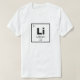 La camiseta con temática científica presenta la tabla periódica, con elementos coloridos y ordenados cuidadosamente, mostrando números atómicos, símbolos y nombres. El diseño destaca elementos clave en negrita, lo que lo hace visualmente atractivo y educativo para los entusiastas de la química.