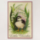 Children's puzzle with a little black bird in a ring of flowers. The pieces are large and easy for small children.