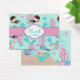 Pequeñas sirenas dulces bajo el mar con conchas marinas, anémona, peces estrella, arrecife de coral y peces etiqueta de regalo de agradecimiento.