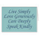 Vivir Simplemente, Amar Generosamente, Cuidar Profundamente, Hablar Amablemente. Palabras para vivir todos los días. Diseñado para un fondo azul.