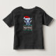 Esta es una adorable camiseta de un niño pequeño Navidad con la cara de una llama adorable con un sombrero de Santa con un borde de Navidades y texto. El texto de la camiseta puede ser personalizado con el suyo o el izquierdo tal como está.