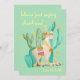 Personaliza esta linda tarjeta de agradecimiento de llama. La plantilla está configurada para que agregues tu texto y/o nombre en la parte frontal de la tarjeta (donde la redacción de muestra dice "con amor Gabrielle". Esta tarjeta verde menta presenta una ilustración de una llama y un cactus de acuarela con una adorable llama rubia que lleva una guirnalda de flores y una manta de silla. Ella está parada en medio de un jardín de cactus con flores amarillas. La parte trasera de la tarjeta tiene plantas del desierto con mucho espacio, en caso de que desees escribir una nota. Por favor, explore nuestra tienda para ver nuestros productos coincidentes y coordinados.