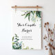 Esta señal de vela arde con caligrafía de vegetación es perfecta para una boda tropical. El diseño presenta hojas tropicales verdes predominantemente.