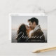 ¿Necesitas cambiar la fecha de tu boda? Nuestras elegantes tarjetas de aplazamiento de boda son perfectas para notificar a tus invitados la nueva fecha. La tarjeta de cambio de fecha presenta "Aplazamiento" en una superposición de escritura de caligrafía blanca con tu foto de compromiso horizontal. Personaliza la tarjeta agregando tus nombres, dirección de devolución, detalles de la boda, sitio web de la boda, etc.