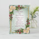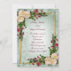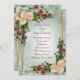 Invitación de bodas flores exóticas con acentos dorados sobre un suave fondo verde. El texto es totalmente personalizable. lirios de calila y rosas. La plantilla se puede utilizar para cualquier ocasión especial.