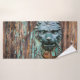 Esta imagen de primer plano muestra un apasionante timbre que representa la cabeza de un león, con grano de madera, rayas oscuras, nudos y astillas de pintura turquesa en el fondo, todo lo cual contribuye de manera bella a su encanto rústico y a su encanto natural. Este diseño atemporal recuerda a la artesanía del viejo mundo y le da un toque de calidez y carácter a cualquier decoración. La pintura descolorida de la madera realza este efecto al crear un aspecto texturado y de capas que evoca la historia y las historias que contiene sus fibras. Un diseño de este tipo introduce un sentimiento de naturaleza y tranquilidad. Con sus tonos tierra y su autenticidad, este tipo de hogar y acento viviente transforma su espacio en un refugio sereno, combinando elementos naturales y estética.