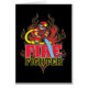 ¡El bombero en juego rojo y amarillo del fuego que riega abajo del texto del bombero con rabiar flamea en el fondo! ¡Gran regalo para los bomberos!