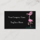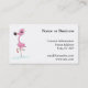 Un flamingo rosa en un frente negro oscuro con el nombre y el lema de tu empresa, en la parte trasera el resto de la información de contacto sobre fondo blanco. Recordarán esta tarjeta de visita