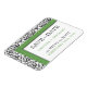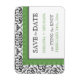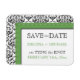 Premium moderno y de moda Salve el imán de la fecha. Presenta un diseño/ilustracion de costura verde sobre un patrón de damasco blanco y negro. Este imán es plano y puede caber en un sobre (no incluido).