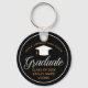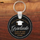 Esta cadena de claves para graduados de moda, negra y dorada, presenta tipografía blanca elegante bajo un nombre de instituto o universidad para la clase de 2023. Personalizar con tu año de graduación bajo la elegante caligrafía para un gran regalo personalizado de la cadena de claves de graduados.