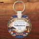 Celebrate America’s 250th Anniversary with this dignified patriotic keychain design featuring classic U.S. symbols including the American flag, a proud bald eagle with shield, the Liberty Bell, fireworks, and red, white, and blue florals. The elegant banner honoring the 250th Anniversary frames a central area designed for personalization, making this a meaningful keepsake for historic celebrations.