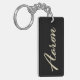Ein sehr schöner edler personalisierter Schlüsselanhänger im whitegold Lettering Look auf schwarz für Aaron.