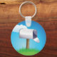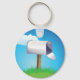 Este diseño es un buzón abierto. El buzón es blanco y está situado en lo alto de una colina verde contra un cielo azul. Este diseño de buzón abierto se ve muy bien