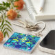 Esta cadena de claves abstracta única presenta arte fractal simétrico en colores vivos: azul, cian, verde y morado.