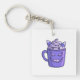 A man with dark hair and a beard is shown from the waist up, wearing a plain white t-shirt and blue jeans. He is looking to his right with a slight smile. Centered on his t-shirt is a graphic of a purple mug designed with a spooky, carved-face expression, topped with a large dollop of white whipped cream and two small purple horns or ears, along with a few candy corn decorations. The background is a solid, light color.