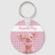 Llavero Acuarela de cerdo rosa Gingham Plaid Monograma