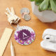 Basado en mi ilustracion acuarela de iris morado con sus pétalos multicolor, morado en la parte exterior y amarillo en el centro, con finos detalles de los pétalos y follaje. El producto tiene un patrón de puntos de polka blanco y negro de moda en el fondo. El producto tiene un monograma inicial de su elección en el centro y el nombre impreso bajo el monograma, personalizar estos en mi tienda para un diseño personalizado.