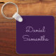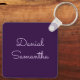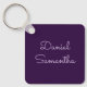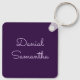 Custom name personalized keychain with elegant purple color.