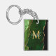 Esta cadena de llaves presenta un elegante y glamuroso fondo de mármol agate con detalles de piedra de gema geodésica y falsos acentos purpurinas de oro. El monograma combina el guión manuscrito y las fuentes sans serif modernas para un aspecto elegante y sofisticado. Esto hará el regalo ideal ya que se puede personalizar con un nombre y una inicial. Los tonos verdes profundos lo convierten en perfecto para otoño e invierno.