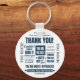 La forma perfecta de mostrar tu agradecimiento y gratitud. Esta elegante llavero muestra varias variaciones de un mensaje de agradecimiento en tipografía azul oscuro. Sería un gran regalo para el padrino - o agradecer a un maestro o médico masculino.