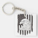 El águila majestuoso se alza orgullosamente al lado de la bandera nacional estadounidense.