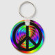 Arte fractal de color arcoiris funky con un símbolo de paz negro.