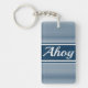 Diseño de texto Ahoy con decoración de rayas azul marino y blanco