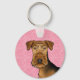Llavero Airedale Terrier Cute Dog Head On Pink Hearts