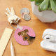 El original ilustracion personalizado de Destei de un adorable retrato de cabeza de perro de la raza Airedale Terrier en un color de fondo rosado con un patrón de corazones de diferentes tamaños. En el otro lado hay un área de texto personalizable para un nombre u otro texto personalizado.