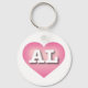 Este llavero presenta un corazón fresco y rosa con un centro blanco lavado que contiene las letras negrita, blanca y funda superior AL, la abreviatura oficial de Alabama, el estado martillo amarillento.