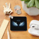Llavero Alas del Ángel Azul brillante sobre fondo negro