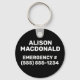 Llavero Alergia de alimentos de contacto de emergencia bla